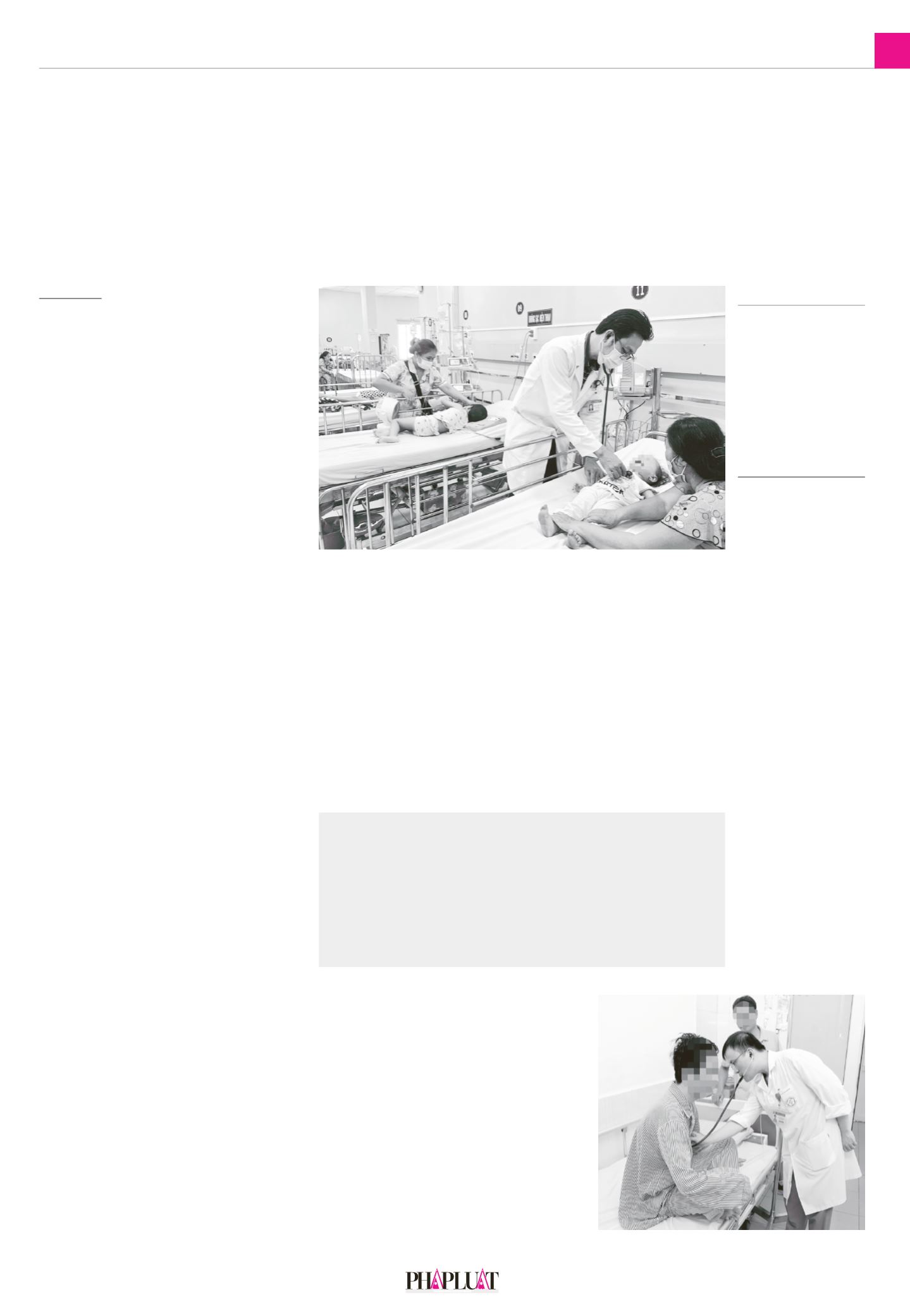 Bác sĩ BVNhi đồng 1, TP.HCMđang khámcho trẻmắc sốt xuất huyết. Ảnh: THẢOPHƯƠNG