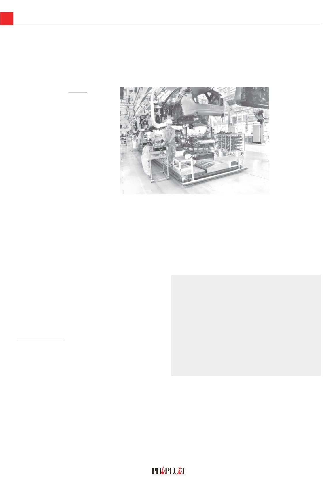 Công nhân làmviệc trong nhàmáy sản xuất, lắp ráp ô tô. Ảnh: QUANGHUY